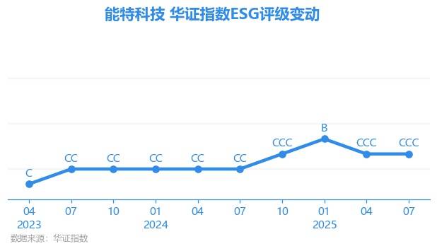 从细项得分来看,能特科技E项得分56.69,评级为C,行业内排名180/255(E项目评分维度包括气候变化、资源利用、环境污染、环境管理);S项得分71.97,评级为B,行业内排名237/255(S项目评分维度包括人力资本、产品责任、供应商、社会贡献);G项得分77.23,评级为BB,行业内排名176/255(G项目评分维度包括股东权益、治理结构、信披质量、治理风险、外部处分、商业道德)。