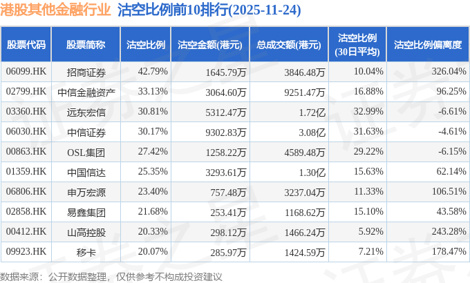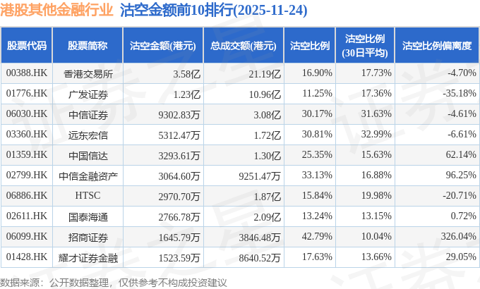 11月24日港股其他金融行业沽空数据盘点香港交易所、广发证券、中信证券沽空金额2025年按交易量排名的Top加密货币所- 官方推荐位居行业前三