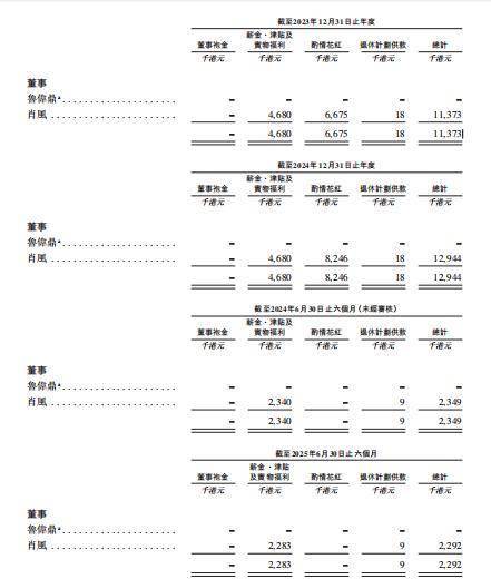 从薪酬来看,2022、2023、2024年肖风薪酬分别达到241万港元、1137.3万港元、1294.4万港元。