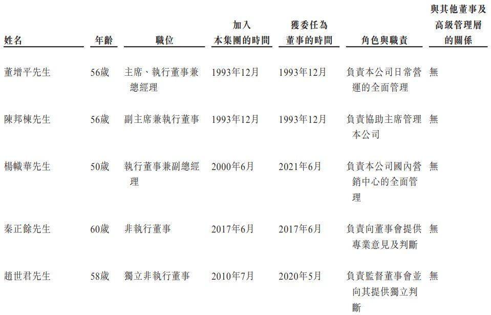 其中董增平先生为公司创始人、董事局主席、执行董事兼总经理,陈邦栋先生为公司联合创始人,董事局副主席兼执行董事,杨帜华先生担任公司执行董事兼副总经理。非执行董事为秦正余,独立非执行董事分别为赵世君、叶锋、邱宇峰、陈诗韵女士。