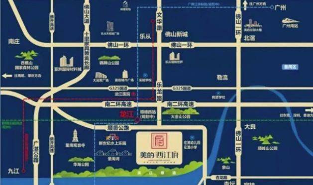 美的・西江府交通极其便利,拥有三纵四横的立体交通脉络,乐龙路、广湛公路、佛开高速等要道贯穿,佛山一环、325 国道等连接四方 。双轻轨规划让未来出行更便捷,广佛江珠轻轨和肇顺南深轻轨交汇于龙江,形成珠江西岸双轨枢纽 。从项目到广州仅需 12 分钟车程,到深圳、珠海等珠三角一线 小时以内,到顺德西站只需 5 分钟 。公交方面,373、377、378 路公交车方便居民日常出行,真正构建了一小时泛珠三角生活圈,无论是通勤、商务出行还是休闲旅游,都轻松畅达。