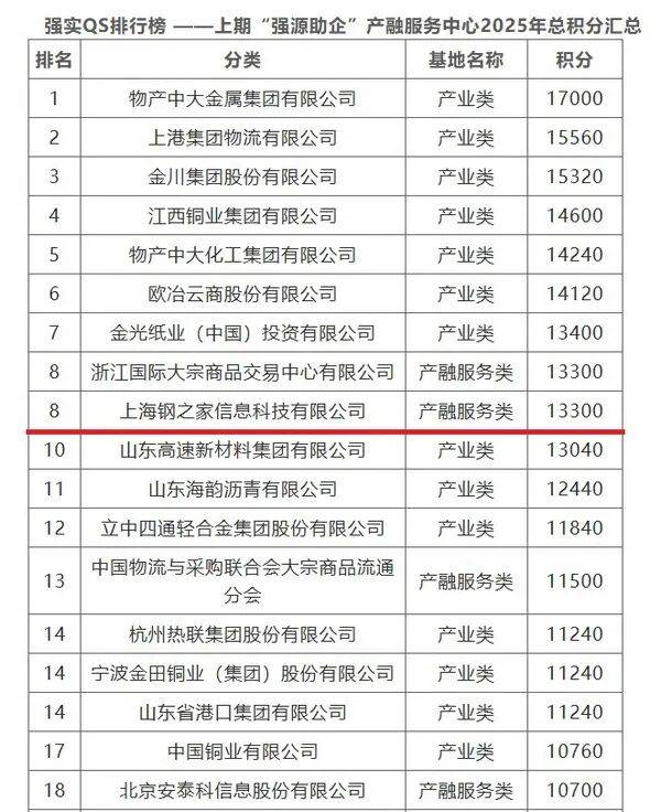 钢之家荣膺上期所“强实QS排行榜”产融服务类机构榜首2025