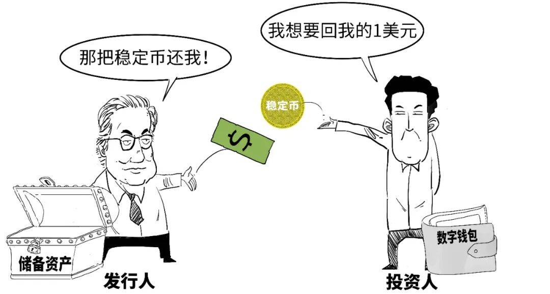 当投资人选择赎回他的1美元,发行机构就会向该投资人的银行账户汇入1美元,