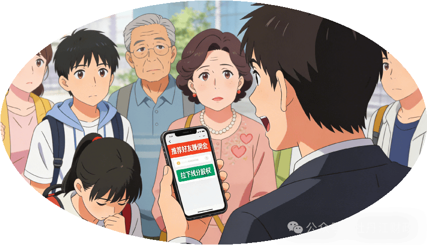 2.拉人头返现,传销式收割:搞“推荐好友赚佣金”“拉下线分股权”的套路,让你拉亲戚、室友、同学加入。很多人觉得“不用投钱,拉人就能赚”,其实你只是骗子的“工具人”,等没人再拉新,整个盘子就崩了,最后不仅自己亏,还坑了身边人。